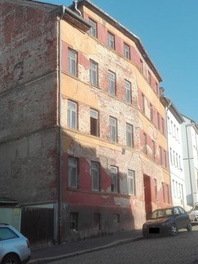Das Wohnhaus in der Robert-Koch-Straße Nr.7, unmittelbar an der Kreuzung mit der Turmstraße in Gera, befindet sich seit geraumer Zeit in einem auch für Laien bedrohlich wirkenden Bauzustand. Dach und Decken des 3- stöckigen Gebäudes sind bereits sämtlich eingestürzt, ein herabgefallener Deckenbalken ragt durch ein Fenster im Hochparterre ins Freie. Wer auf dem Gehweg davor steht, kann durch alle Etagen hindurch den Himmel sehen!